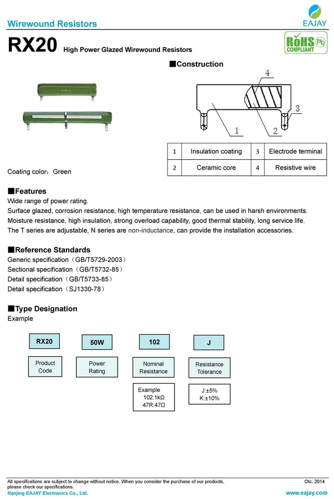Product introduction:Wide range of power rating. Surface glazed, corrosion resistance, high temperature resistance, can be used in harsh environments. Moisture resistance, high insulation, strong overload capability, good thermal stability, long ser