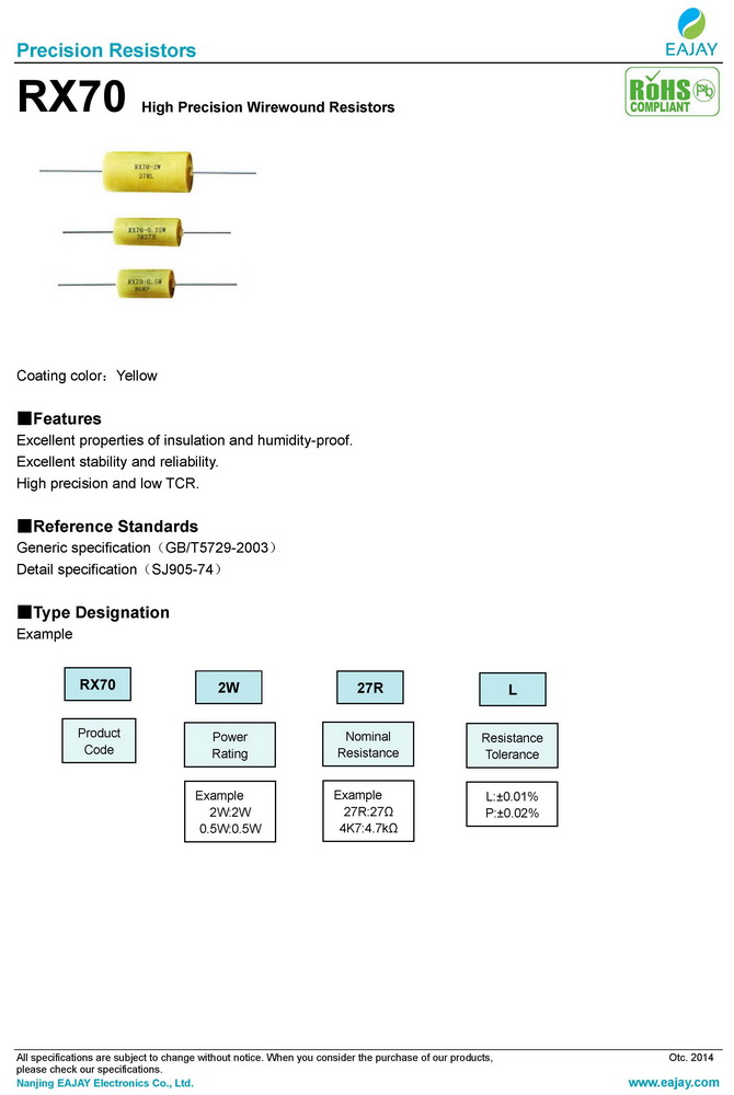 RX70 high precision wirewound resistors