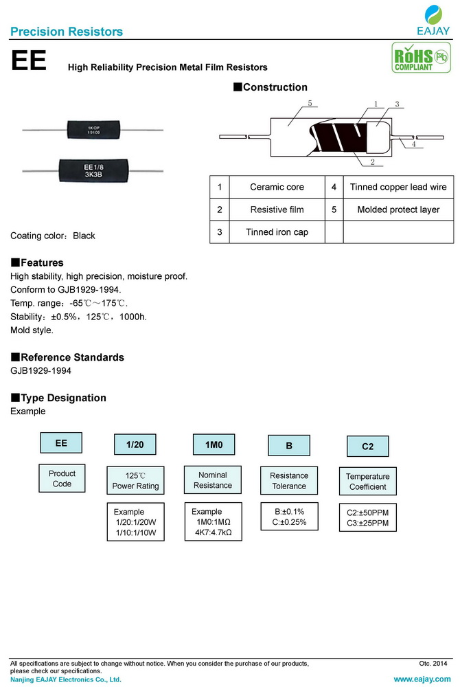 Product introduction:High stability, high precision, moisture proof. Conform to GJB1929-1994. Temp. range:-65℃~175℃. Stability:±0.5%,125℃,1000h. Mold style.