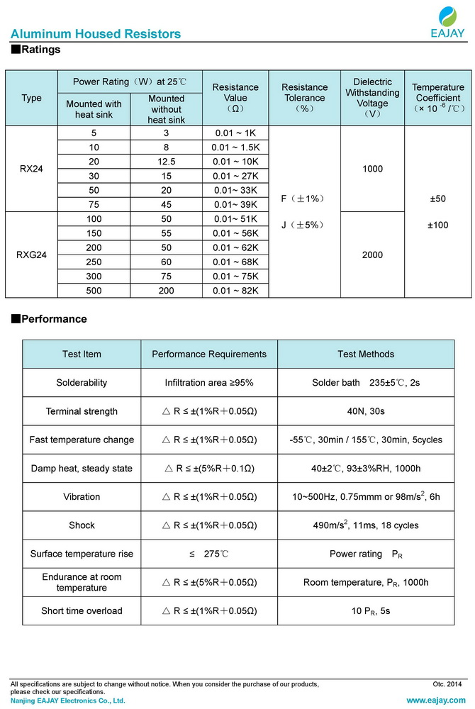 - RX27-4H ceramic cement resistors