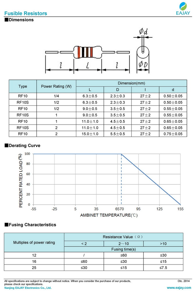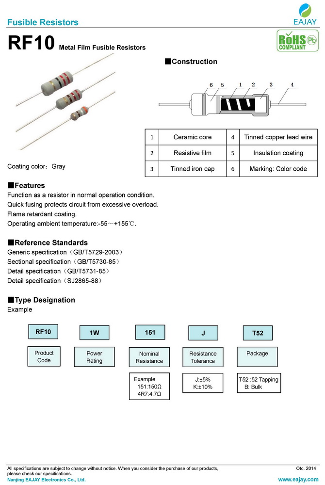 Product introduction:Function as a resistor in normal operation condition. Quick fusing protects circuit from excessive overload. Flame retardant coating. Operating ambient temperature:-55~+155℃.