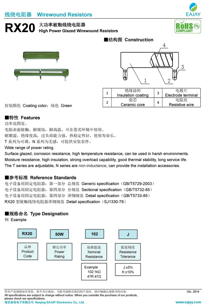 RX20大功率被釉線(xiàn)繞電阻器