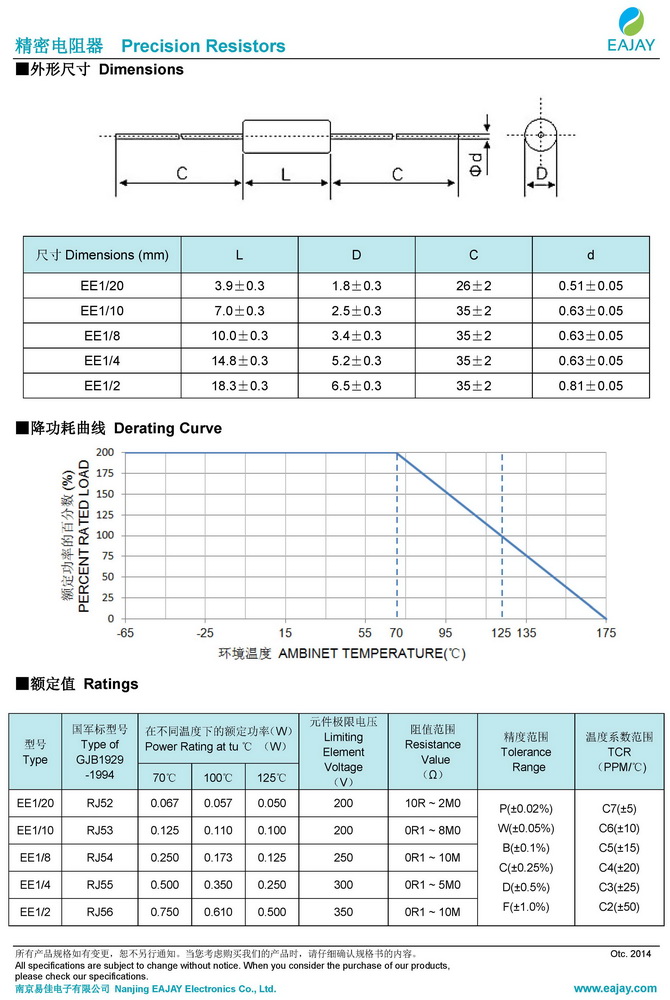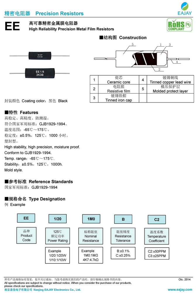 產(chǎn)品簡(jiǎn)介:高穩定、高精度、防潮濕。 符合國家軍用標準GJB1929-1994。 溫度范圍:-65℃~+175℃。 穩定度:±0.5%,125℃,1000小時(shí)。 塑封型。