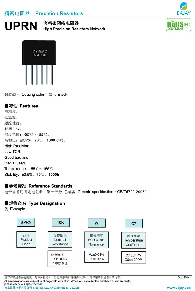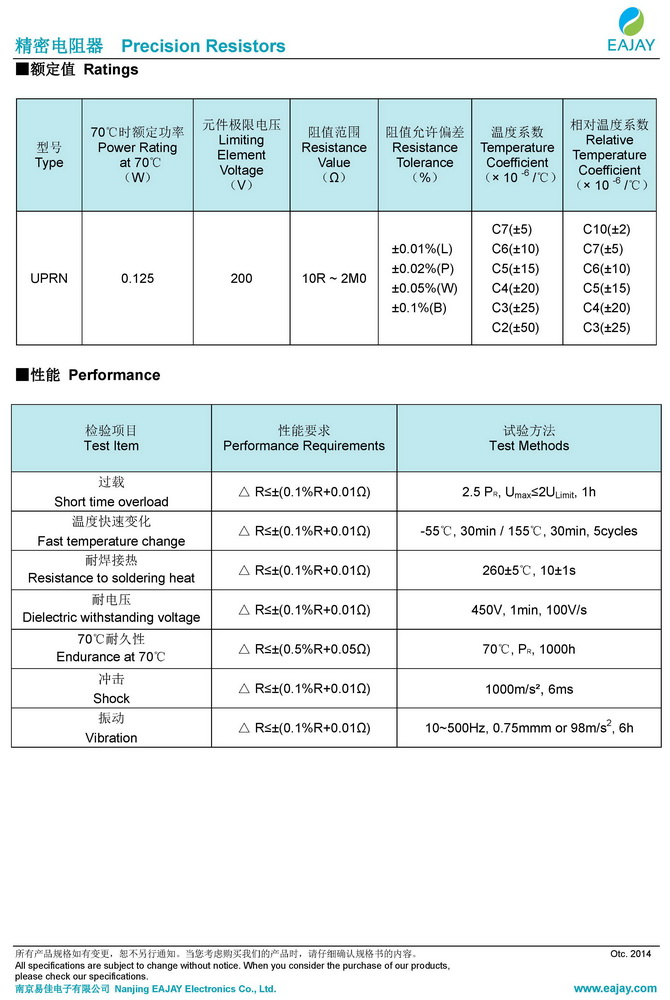 產(chǎn)品簡(jiǎn)介:高精度。 低溫漂。 跟蹤性好。 徑向引線(xiàn)。 溫度范圍:-55℃~155℃。 高穩定:±0.5%,70℃,1000小時(shí)。