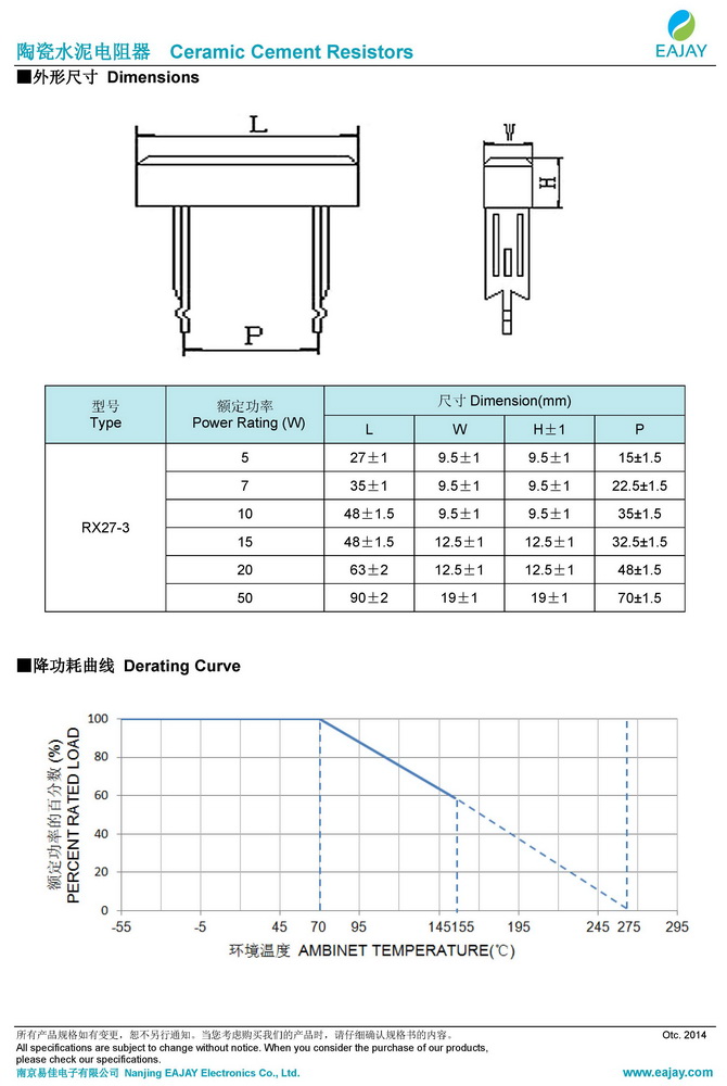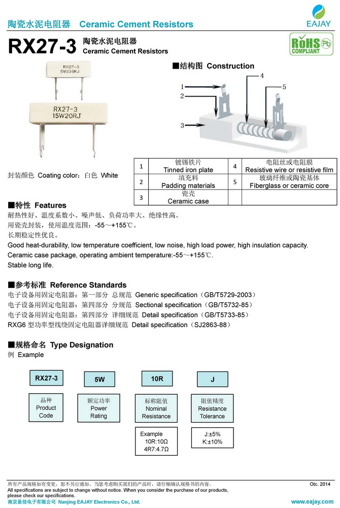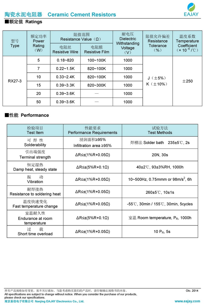 產(chǎn)品簡(jiǎn)介:耐熱性好、溫度系數小、噪聲低、負荷功率大、絕緣性高。 用瓷殼封裝,使用溫度范圍:-55~+155℃。 長(cháng)期穩定性?xún)?yōu)良。