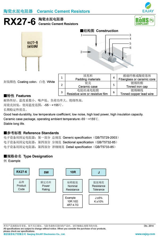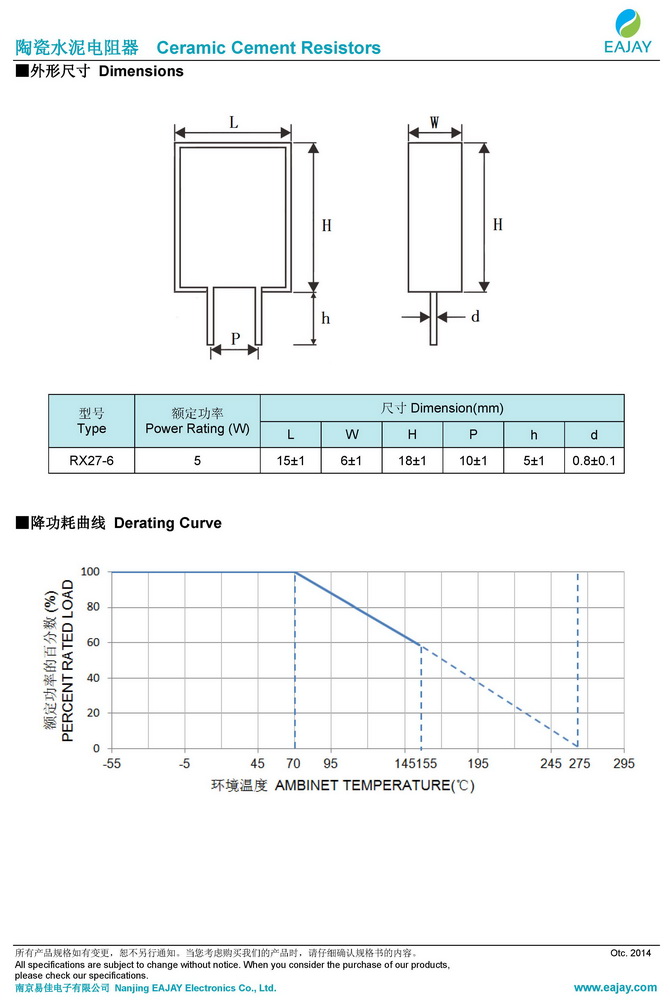 產(chǎn)品簡(jiǎn)介:耐熱性好、溫度系數小、噪聲低、負荷功率大、絕緣性高。 用瓷殼封裝,使用溫度范圍:-55~+155℃。 長(cháng)期穩定性?xún)?yōu)良。