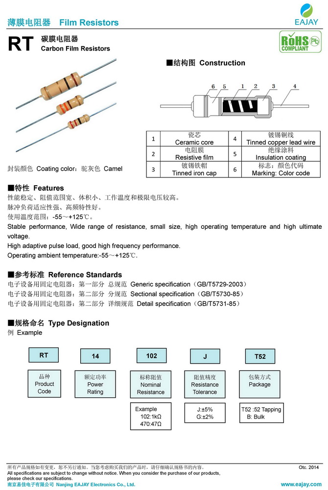 產(chǎn)品簡(jiǎn)介:性能穩定、阻值范圍寬、體積小、工作溫度和極限電壓較高。 脈沖負荷適應性強、高頻特性好。 使用溫度范圍:-55~+125℃。