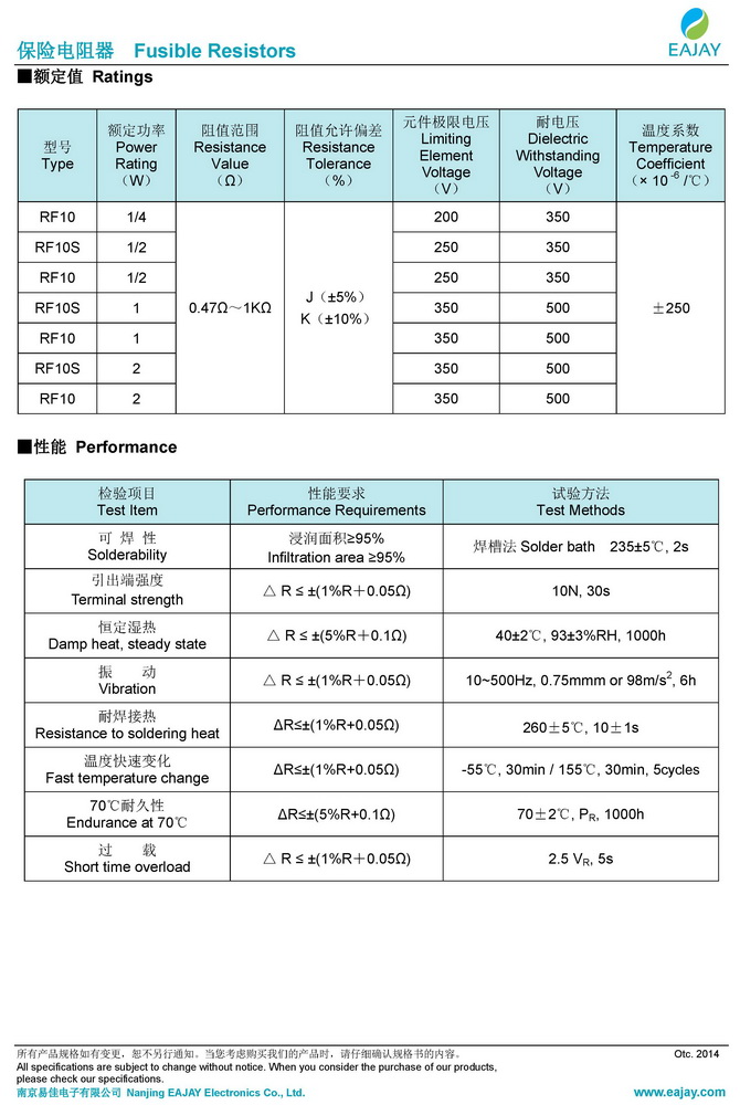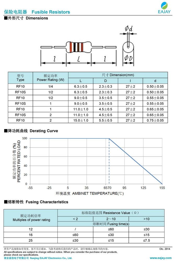 產(chǎn)品簡(jiǎn)介:正常情況下具備電阻功能。 異常過(guò)負荷時(shí)可快速熔斷保護電路。 阻燃絕緣涂裝。 使用溫度范圍:-55~+155℃。