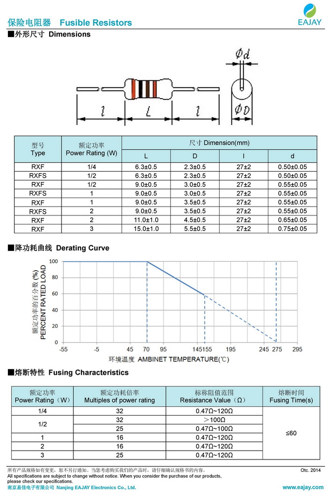 產(chǎn)品簡(jiǎn)介:正常情況下具備電阻功能。 異常過(guò)負荷時(shí)可快速熔斷保護電路。 阻燃絕緣涂裝。 使用溫度范圍:-55~+155℃。