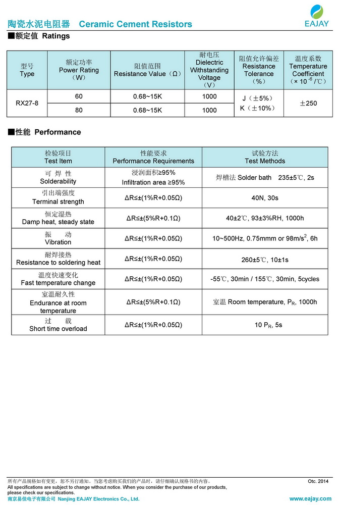 RX27-8型陶瓷水泥電阻器