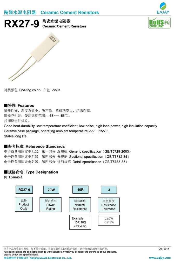 產(chǎn)品簡(jiǎn)介:耐熱性好、溫度系數小、噪聲低、負荷功率大、絕緣性高。 用瓷殼封裝,使用溫度范圍:-55~+155℃。 長(cháng)期穩定性?xún)?yōu)良。