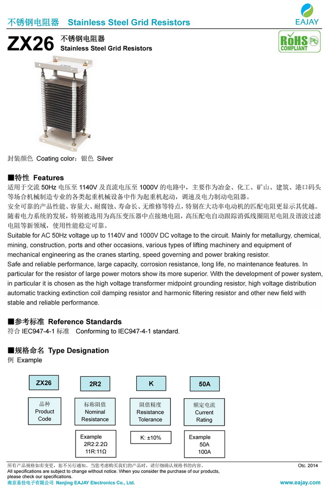 產(chǎn)品簡(jiǎn)介:適用于交流50Hz電壓至1140V及直流電壓至1000V的電路中,主要作為冶金、化工、礦山、建筑、港口碼頭等場(chǎng)合機械制造專(zhuān)業(yè)的各類(lèi)起重機械設備中作為起重機起動(dòng),調速及電力制動(dòng)電阻器。